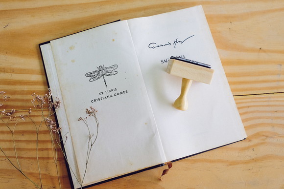 Carimbo Ex-Libris personalizado, para os amantes da boa leitura. “Ex Libris é a expressão que significa, literalmente, “dos livros de” ou “faz parte de meus livros”, empregada para associar o livro a uma pessoa ou a uma biblioteca.” Eu achei para vender na Elo7 e também no mercado livre.