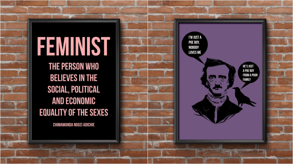 Uma ótima decoração para um cantinho de leitura ou para a casa toda! Esses da imagem são os meus dois favoritos! Você pode ver todos os quadros com temáticas literárias aqui.